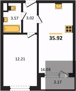 Квартира: 1 к 35,92 кв.м., 1 этаж в комплексе Ю, 3 очередь, корп.3, сдача: 3кв. , этажей: 15, адрес Воронеж г., Цимлянская ул., д. 10Г, Застройщик: Еврострой.