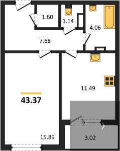 Квартира: 1 к 43,37 кв.м., 3 этаж в комплексе Бунин, 5 очередь, корп.Секция 1, сдача: 4кв. , этажей: 25, адрес Воронеж г., Московский пр., д. 140, Застройщик: ВДК.