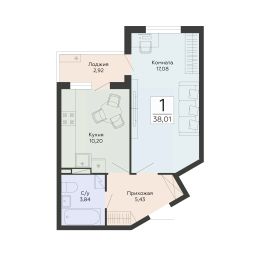 Продаётся 1-комнатная квартира в строящемся доме (1 этап), срок сдачи: IV-кв. 2029, общей площадью 38.01 кв.м., на 2 этаже. Новый жилой комплекс от группы компаний ''Развитие'' расположен по адресу: г. Воронеж, по ул. Туполева.