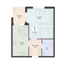 Продаётся 1-комнатная квартира в строящемся доме (1 этап), срок сдачи: IV-кв. 2029, общей площадью 42.6 кв.м., на 2 этаже. Новый жилой комплекс от группы компаний ''Развитие'' расположен по адресу: г. Воронеж, по ул. Туполева.