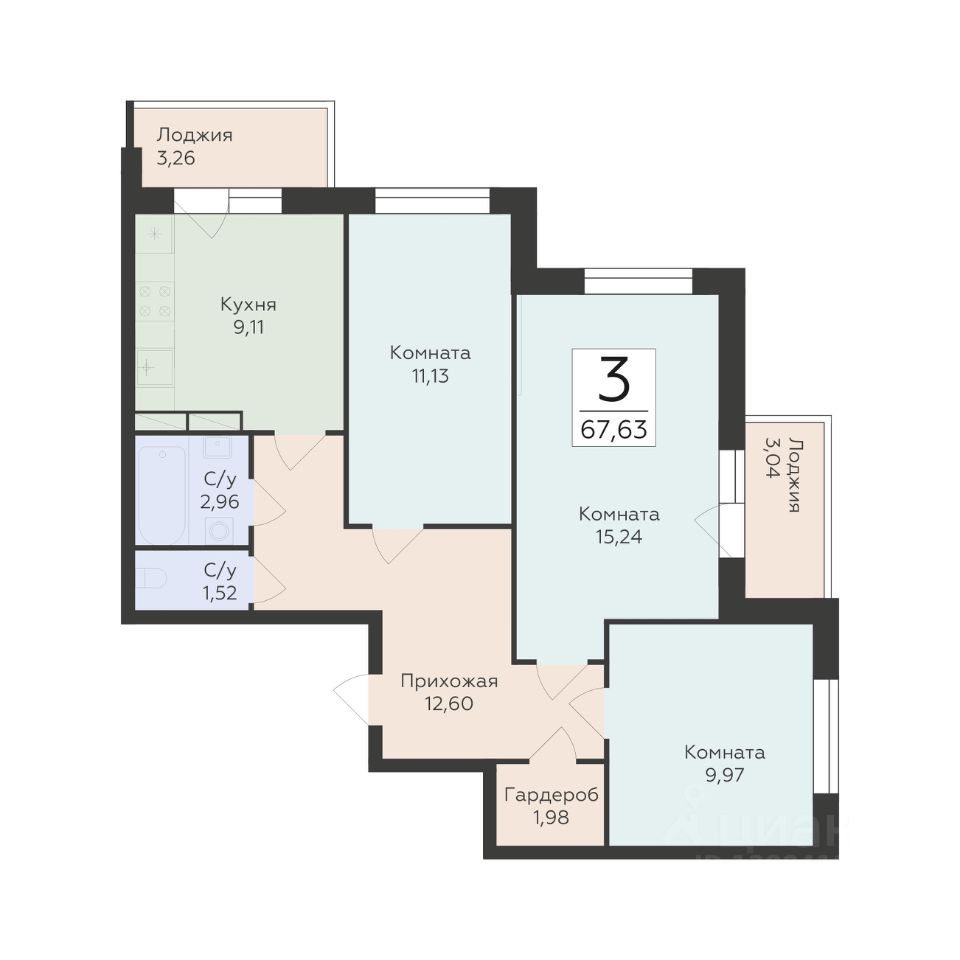 67 м² · Этаж 9 из 19