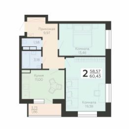 43 м2
