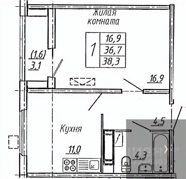 38 м² · Этаж 1 из 20