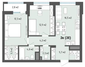 📚 Какая площадь двухкомнатных квартир?