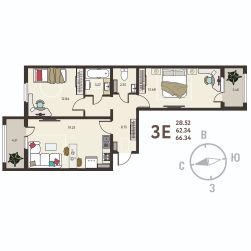 Квартира: 2 к 64,28 кв.м., 7 этаж в комплексе Победа, 2 очередь, корп.3, сдача: 1кв. , этажей: 8, адрес Новая Усмань село, Полевая ул., , Застройщик: ГК ПЕРВОГРАД.