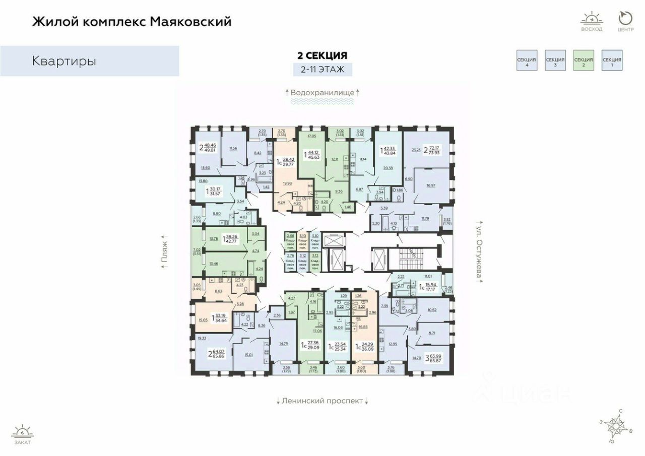 Квартира: 2 к 64,09 кв.м., 15 этаж в комплексе Городские сады, 2 очередь, корп.1, сдача: 2кв. , этажей: 18, адрес Воронеж г., Ломоносова ул., , Застройщик: ВДК.Жилой комплекс расположен в зеленом микрорайоне города Воронежа на улице Ломоносова. Комплекс комфорт-класса в формате ''город-сад'' отличается особой рекреационной составляющей и ''дружелюбной к экологии'' концепцией (eco-friendly).Переменная этажность (5 — 18 этажей) делает комплекс комфортным для жителей и динамичным по архитектуре, улучшает инсоляцию (увеличивает доступ солнечного света во двор и квартиры). Монолитная технология строительства здания с использованием многослойных перегородок, стяжек, звукоизолирующего материала в плитах перекрытия позволяет реализовать улучшенные показатели межквартирной шумоизоляции.Комплекс обладает хорошей транспортной доступностью. А также близко расположен к лесной зоне с природоохранным статусом (Воронежская нагорная дубрава). В зоне пешей доступности комплекса уже расположены 2 муниципальных детских сада, несколько частных детских садов, детская поликлиника 1, областная детская клиническая больница 1 с отделением детской поликлиники.Рядом с ЖК администрацией города запланировано создание полноценного социального узла. В него войдут: многоуровневый образовательный комплекс, который включает в себя общеобразовательную школу на 2860 мест и детский сад на 600 мест, детская школа искусств с библиотекой, поликлиника на 1100 посещений в смену с подстанцией скорой медицинской помощи, многофункциональный спортивный комплекс ''Академия''.Пространство жилого комплекса представляет собой настоящий ''город-сад'' и будет состоять из нескольких кварталов-садов: Яблоневый, Еловый, Дубовый, Сиреневый, Кедровый, Ягодный, Цветочный, Березовый и Абрикосовый. На создание такой концепции создателей вдохновили уже существующие ландшафты и деревья. В зимние месяцы жителей квартала будут радовать вечнозеленые хвойные деревья и кустарники, весной — цветущие яблони, абрикосы, сирень, летом — злаковые растения, травы и цветы. А осень подарит удивительные краски и эффектное цветение многолетников. В распоряжении жителей проекта будет парк ''Лесной'', включающий в себя общественные пространства, детские, спортивные площадкиЭто современный экологичный квартал, свободный от автомобилей. Основной разрешенный транспорт на территории проекта — это велосипеды, самокаты и ролики. Для автомобилей специальных служб предусмотрен технический проезд. По периметру домов, а также на первых этажах и в лифтах будет установлено видеонаблюдение.На территории будет расположено множество игровых зон: многофункциональные площадки для детей различных возрастов. Для любителей активного образа жизни на территории комплекса предусмотрены зоны уличных тренажеров, workout-комплексы, игровые площадки (для игры в волейбол, стрит-бол, настольный теннис), площадка для занятия йогой. Обязательные веломаршруты и велопарковки. Зимой на игровой площадке есть возможность залить каток. Рядом с домами первой очере