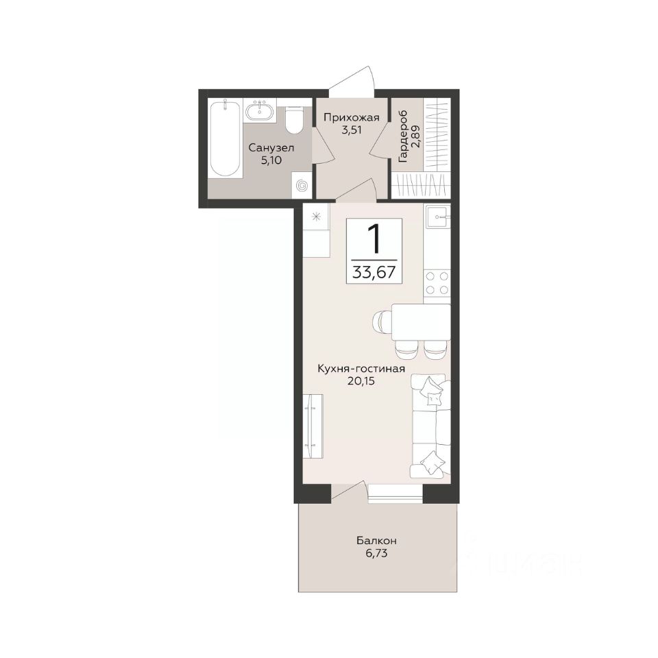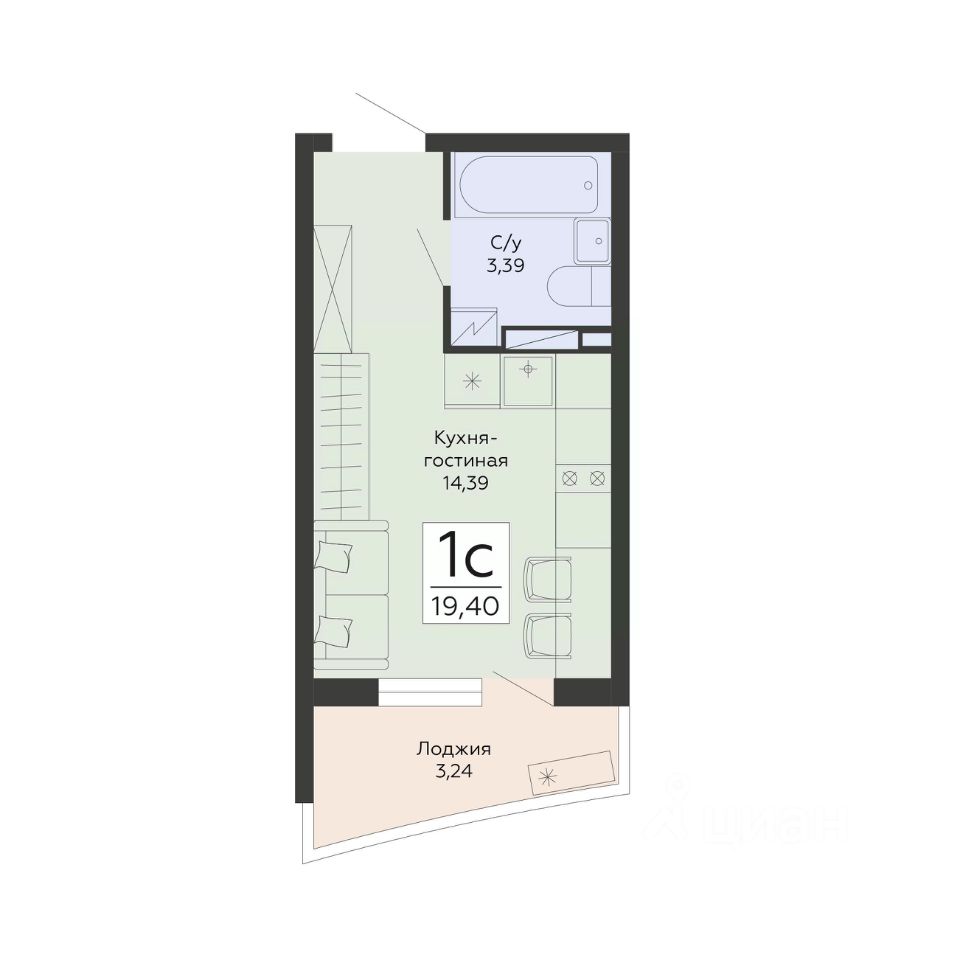 19 м² · Этаж 20 из 24
