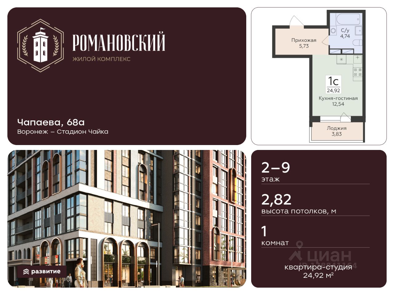 Жилой комплекс ''Романовский'' - проект класса ''комфорт плюс'', расположенный на улице Чапаева, в месте, где история встречается с современностью. Соседство с объектом культурного наследия ''Водонапорная башня Романовской слободы'' делает жилой комплекс воплощением статусности, комфорта и умиротворения. Выбирайте спокойную размеренную жизнь в шумном мегаполисе, не отказываясь от привычных занятий и увлечений. Прогулочный бульвар, стадион для спорта на свежем воздухе, супермаркеты, креативный кластер здесь есть всё, что нужно для полноценной наполненной жизни. Территория двора продумана так, чтобы каждый нашёл здесь занятие по душе. Игровые площадки с безопасным покрытием зонированы по возрасту и создают все условия для игр и общения детей. Современная спортивная площадка с воркаут-зоной поможет поддерживать себя в форме адептам спортивного образа жизни. Планировочные решения квартир спроектированы с учётом современных тенденций и удовлетворяют все потребности будущих жителей. Пространство каждой квартиры продумано до мелочей: •эргономичные студии с зонами для хранения в прихожей, •классические однокомнатные квартиры с гардеробными и большими кухнями, •двухкомнатные квартиры евро-формата с мастер-спальнями гардеробными комнатами, •просторные трёх- и четырёхкомнатные квартиры классического и евро-формата с гостиными, гардеробными и двумя санузлами. В холлах первых этажей спроектированы помещения для колясок и комнаты-лапомойки для ваших питомцев. На каждом этаже ЖК ''Романовский'' мы предусмотрели кладовые комнаты для хранения сезонных вещей. В проекте будет построен подземный паркинг и наземная парковка на прилегающей территории, рассчитанная на 258 мест. Несмотря на то, что парковка находится в непосредственной близости к подъездам, она не нарушает концепцию двора без машин. Ввод в эксплуатацию запланирован в 4 квартале 2027 года согласно проектной документации. Покупая квартиру в ЖК ''Романовский'' от ГК Развитие, вы получаете дополнительно БЕСПЛАТНО: - помощь в одобрении и получении ипотеки с минимальной процентной ставкой. - ПОЛНОЕ ЮРИДИЧЕСКОЕ СОПРОВОЖДЕНИЕ сделки купли-продажи - Помощь в реализации МАТЕРИНСКОГО капитала. - Консультация и показ объекта в любое УДОБНОЕ ВРЕМЯ - Помощь в ПОДГОТОВКЕ И СБОРЕ ВСЕХ ДОКУМЕНТОВ, необходимых для покупки.