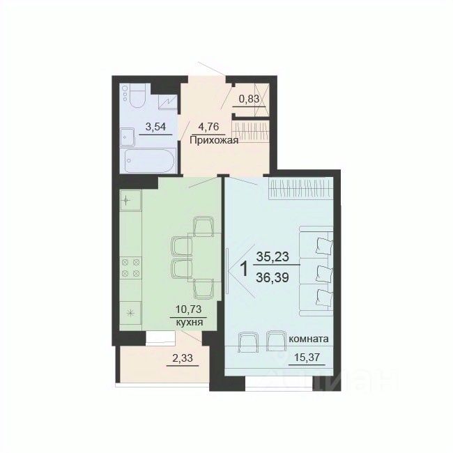 19 м² · Этаж 3 из 17