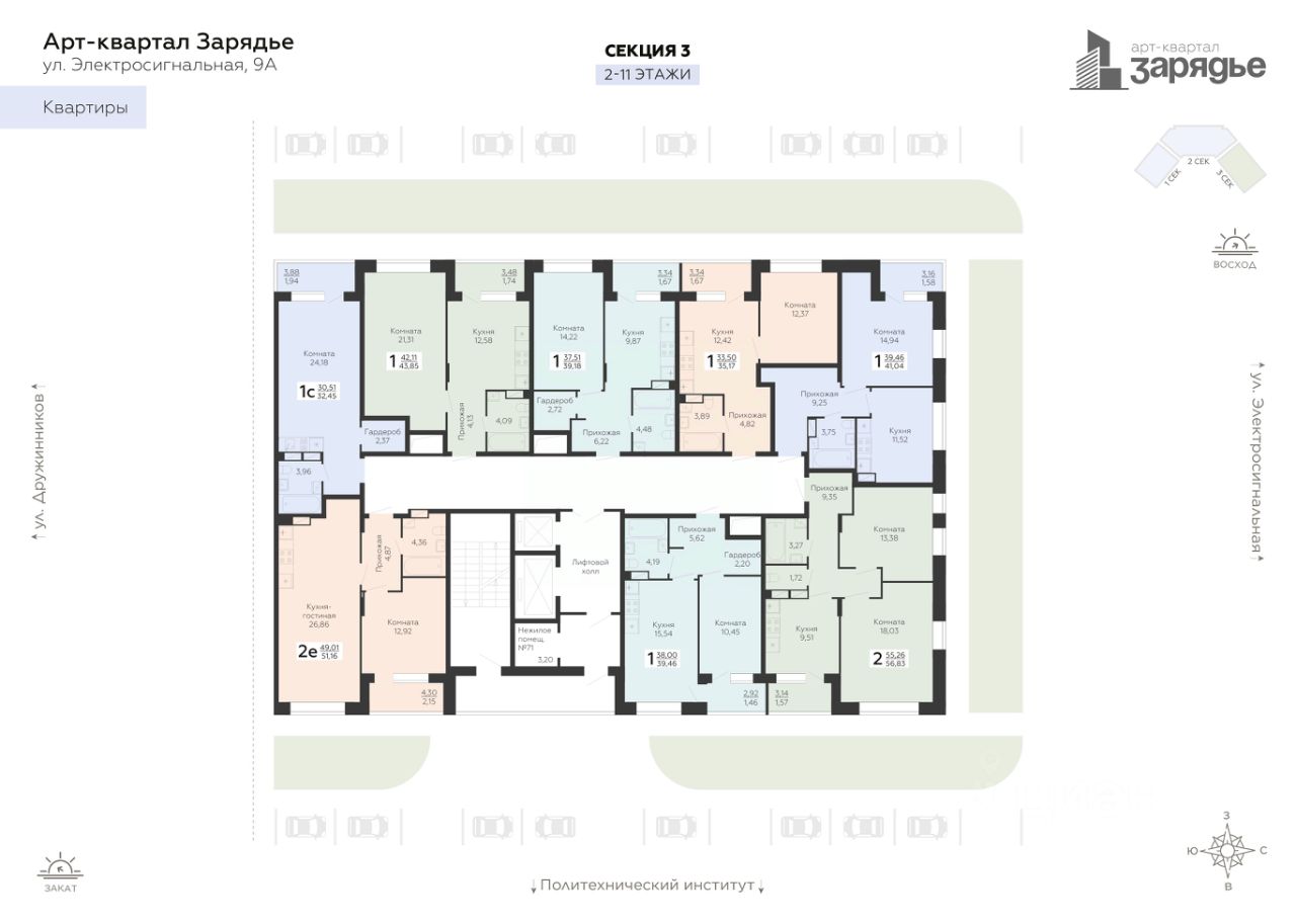 Арт-квартал ''Зарядье'' - это новый микрорайон, который расположен на пересечении улиц Электросигнальной и Дружинников, в 5 минутах ходьбы от остановки Политехнический институт. Арт-квартал возводится в тихой части Коминтерновского района рядом с крупнейшей городской артерией - Московский проспект. Благодаря своему удачному расположению путь до центра города займет всего 10 минут. Помимо транспортной доступности в районе активно развита инфраструктура. Здесь уже много школ и детских садов, высших учебных заведений, работают поликлиники, спортивные секции и прочее. Рядом — магазины и торговые центры. В планах города Воронежа создать дорогу-дублер Московского проспекта которая будет проходить по улице Солнечной. Внутри комплекса появится приватный парк для жителей, где можно гулять, играть на детских и спортивных площадках. Пространство будет разделено на функциональные зоны. Детские площадки, игровые для подростков, зоны отдыха и комьюнити, воркаут-площадка, поле для мини-гольфа. На первых этажах со стороны улицы расположены торговые и офисные помещения. Они предусмотрены под полезные сервисы для жителей: магазины, аптеки, кафе. Арт-квартала ''Зарядье'' состоит из трех зданий переменной этажности соединенным единым двором-парком, и оснащённый просторным подземным паркингом. Квартиры с возможностью выбора отделки — стандарт и бизнес-класс. Покупая квартиру в ГК Развитие, вы получаете дополнительно БЕСПЛАТНО: - помощь в одобрении и получении ипотеки с минимальной процентной ставкой. - ПОЛНОЕ ЮРИДИЧЕСКОЕ СОПРОВОЖДЕНИЕ сделки купли-продажи - Помощь в реализации МАТЕРИНСКОГО капитала. - Консультация и показ объекта в любое УДОБНОЕ ВРЕМЯ - Окажем помощь в ПОДГОТОВКЕ И СБОРЕ ВСЕХ ДОКУМЕНТОВ, необходимых для купли-продажи. - ДЕНЕЖНЫЕ сертификаты от наших партнеров: • на покупку сантехники и благоустройства ванной комнаты в размере 50000р. • на покупку мебели в размере 30000р. • на изготовление корпусной мебели в размере 10000р. • 5 месяцев интернета и ТВ и многие другие. Возможно, вы искали: купить квартиру студию, квартира рядом с московским проспектом, купить квартиру рядом с московским проспектом, купить квартиру на московском проспекте, купить однушку, купить двушку, купить трешку, акции и скидки на новостройки, квартира в центре, купить квартиру в ипотеку в коминтерновском районе, квартира в коминтерновском районе, купить квартиру в коминтерновском районе, новостройка в центре, новостройка в коминтерновском районе, купить квартиру в новом доме, купить квартиру в Воронеже, квартира в клубном ЖК Зарядье, купить квартиру в ЖК Зарядье, стоимость квартиры в центре, квартира в Воронеже, купить квартиру в Воронеже, квартиры в новостройке с паркингом, квартиры от застройщика без посредников, недвижимость Воронеж, инвестиции купить квартиру в новостройке, новостройки сменить квартиру, квартиры в строящемся доме, новостройки с отделкой, первичное жилье в новостройке, квартиры в новостройке без посредников, новостройки с рассрочкой, квартиры в новостройк