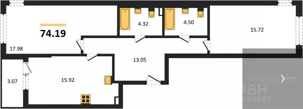 74 м² · Этаж 14 из 22