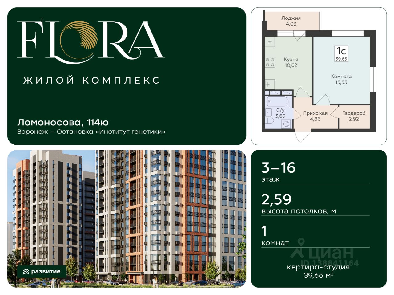 Жилой комплекс ''FLORA'' - проект комфорт-класса, расположенный в одном из самых привлекательных и зелёных районов Воронежа на улице Ломоносова. Государственный природный заповедник, множество образовательных учреждений с качественным уровнем обучения, большой коммерческий фронт для развития малого и среднего бизнеса, центры здоровья и спорта всё это располагается в шаге от жилого комплекса. А свободный доступ к главным городским автомагистралям и транспортным развязкам позволит быть мобильными и смело прокладывать маршруты в любую точку города на автомобиле или общественном транспорте, на велосипеде или пешком. Двор FLORA — это безопасное мультифункциональное пространство для жителей разных возрастов и интересов. Игровые комплексы, установленные на безопасном тартановом покрытии, дарят детям пространство, где они могут быть шумными, активными, неугомонными и желающим изучать мир во всех его проявлениях. Для тех, кто предпочитает активный образ жизни, в жилом комплексе FLORA предусмотрено workout-пространство на свежем воздухе. Продуманные планировочные решения квартир в жилом комплексе FLORA полностью отвечают потребностям жизни современных городских жителей: - комфортные студии отличный выбор для амбициозных студентов - просторные однокомнатные квартиры с гардеробными комнатами для молодых семей - двух и трёхкомнатные квартиры c гардеробными и двумя санузлами для семей с детьми Ввод в эксплуатацию запланирован в 4 квартале 2029 года согласно проектной документации. Покупая квартиру в ЖК ''FLORA'' от ГК Развитие, вы получаете дополнительно БЕСПЛАТНО: - помощь в одобрении и получении ипотеки с минимальной процентной ставкой. - ПОЛНОЕ ЮРИДИЧЕСКОЕ СОПРОВОЖДЕНИЕ сделки купли-продажи - Помощь в реализации МАТЕРИНСКОГО капитала. - Консультация и показ объекта в любое УДОБНОЕ ВРЕМЯ - Помощь в ПОДГОТОВКЕ И СБОРЕ ВСЕХ ДОКУМЕНТОВ, необходимых для покупки.