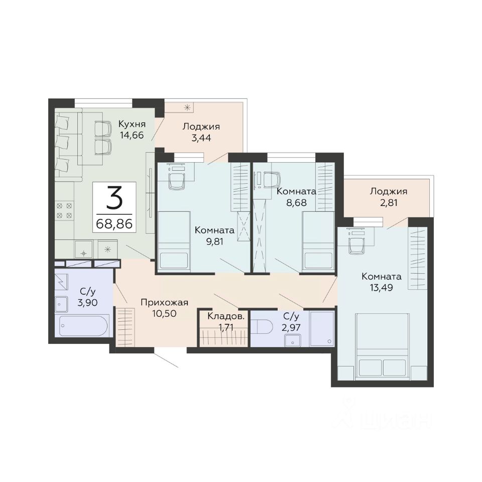 68 м² · Этаж 4 из 13