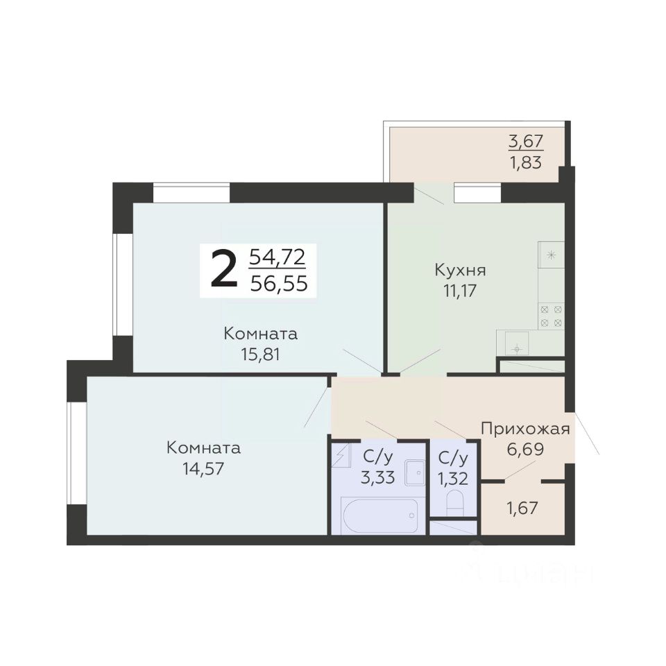 56 м² · Этаж 9 из 18