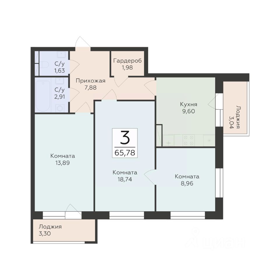 65 м² · Этаж 3 из 19