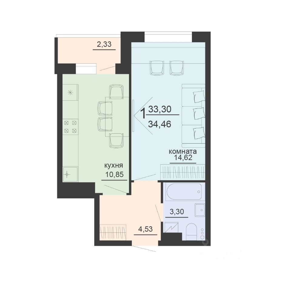 34 м² · Этаж 17 из 18