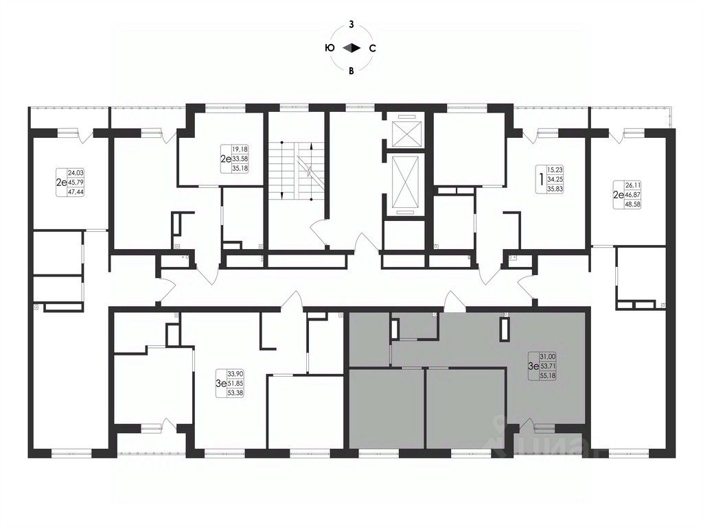 55 м² · Этаж 17 из 17
