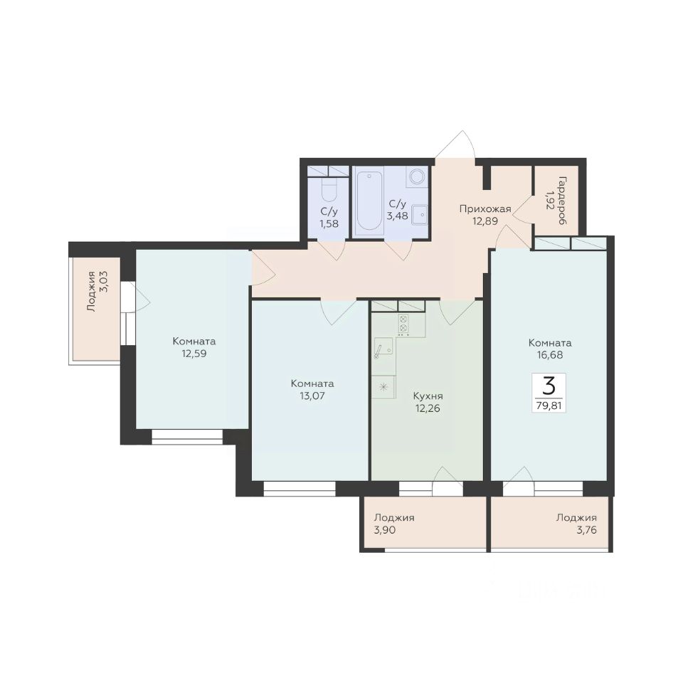 79 м² · Этаж 14 из 17