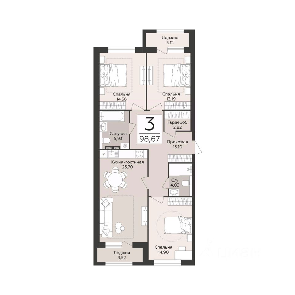 95 м² · Этаж 3 из 12