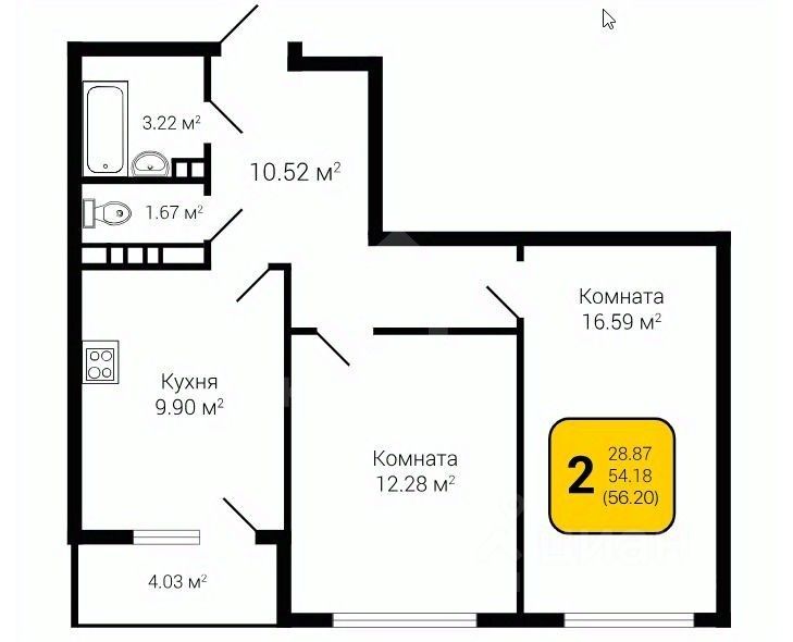 56 м² · Этаж 10 из 17