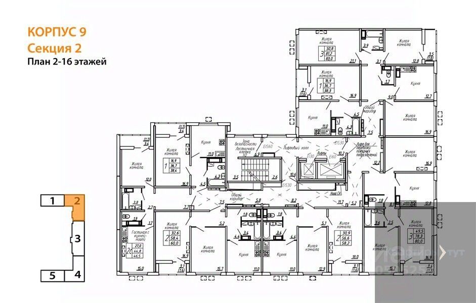 80 м² · Этаж 16 из 19