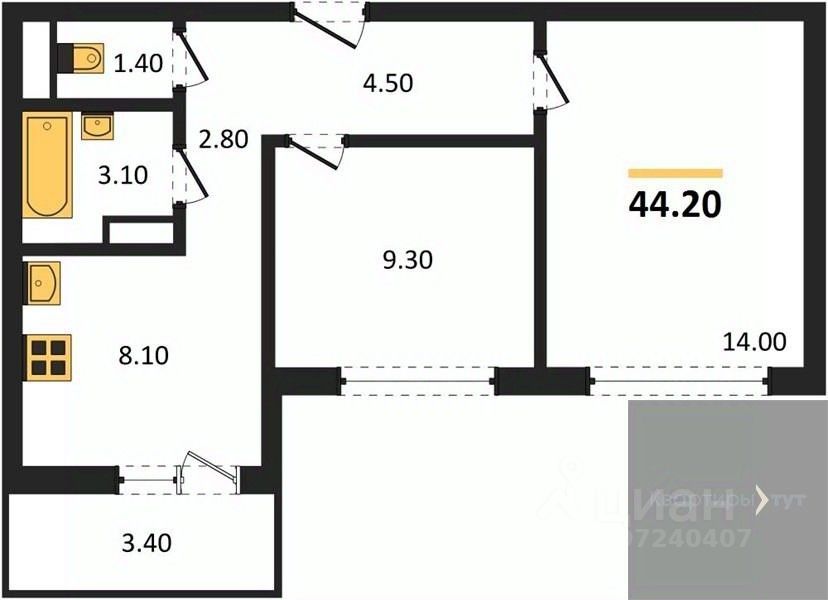 41 м² · Этаж 14 из 17