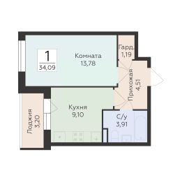 1-к квартира Показать на карте