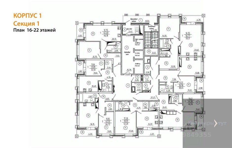 45 м² · Этаж 9 из 15