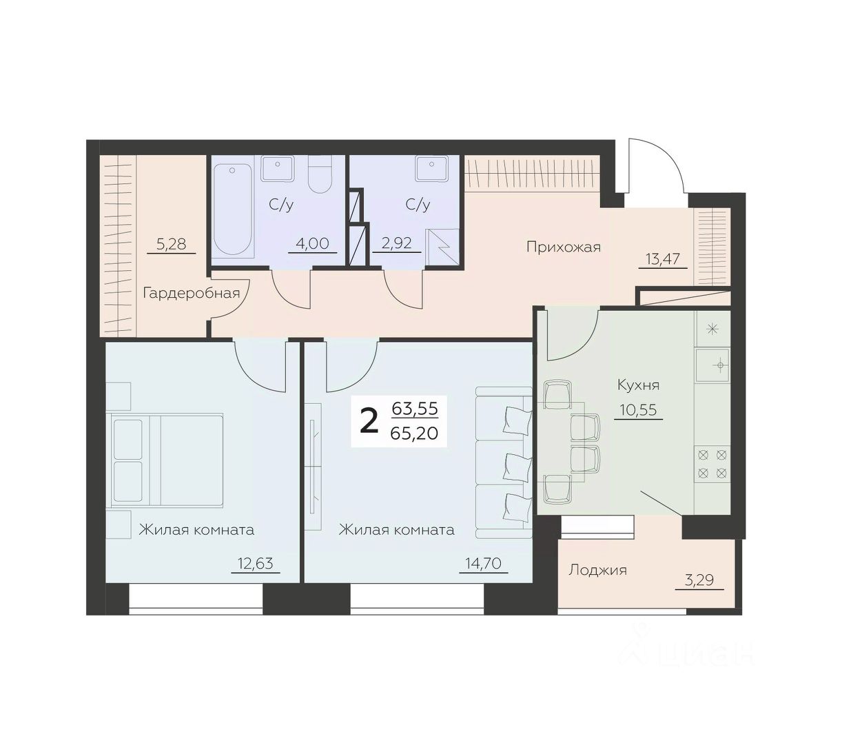 55 м² · Этаж 6 из 24
