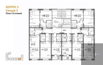 Студия: 40,50 кв.м., 8 этаж в комплексе Ключи CLUB, 3 очередь, корп.3, сдача: 3кв. , этажей: 14, адрес Воронеж г., Остужева ул., д. 52/5, Застройщик: Новый код.