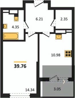 Квартира: 1 к 39,35 кв.м., 2 этаж в комплексе Дом у Ротонды, 1 очередь, корп.1, сдача: 4кв. , этажей: 28, адрес Воронеж г., Транспортная ул., д. 58, Застройщик: ГК ПЕРВОГРАД.
