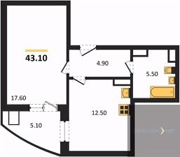 Квартира: 1 к 43,10 кв.м., 16 этаж в комплексе Ласточкино, 10 очередь, корп.22, сдача: 2кв. , этажей: 17, адрес Воронеж г., Шибилкина ул., , Застройщик: ДСК.