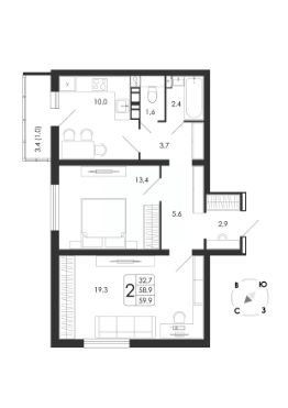 • Минимальная площадь: 34 м²