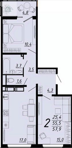 Продаётся 2-комнатная квартира в строящемся доме (Дом 1), срок сдачи: IV-кв. 2027, общей площадью 60.1 кв.м., на 8 этаже. Новый жилой комплекс от группы компаний ''Развитие'' расположен по адресу: г. Воронеж, по ул. пр-кт Труда.