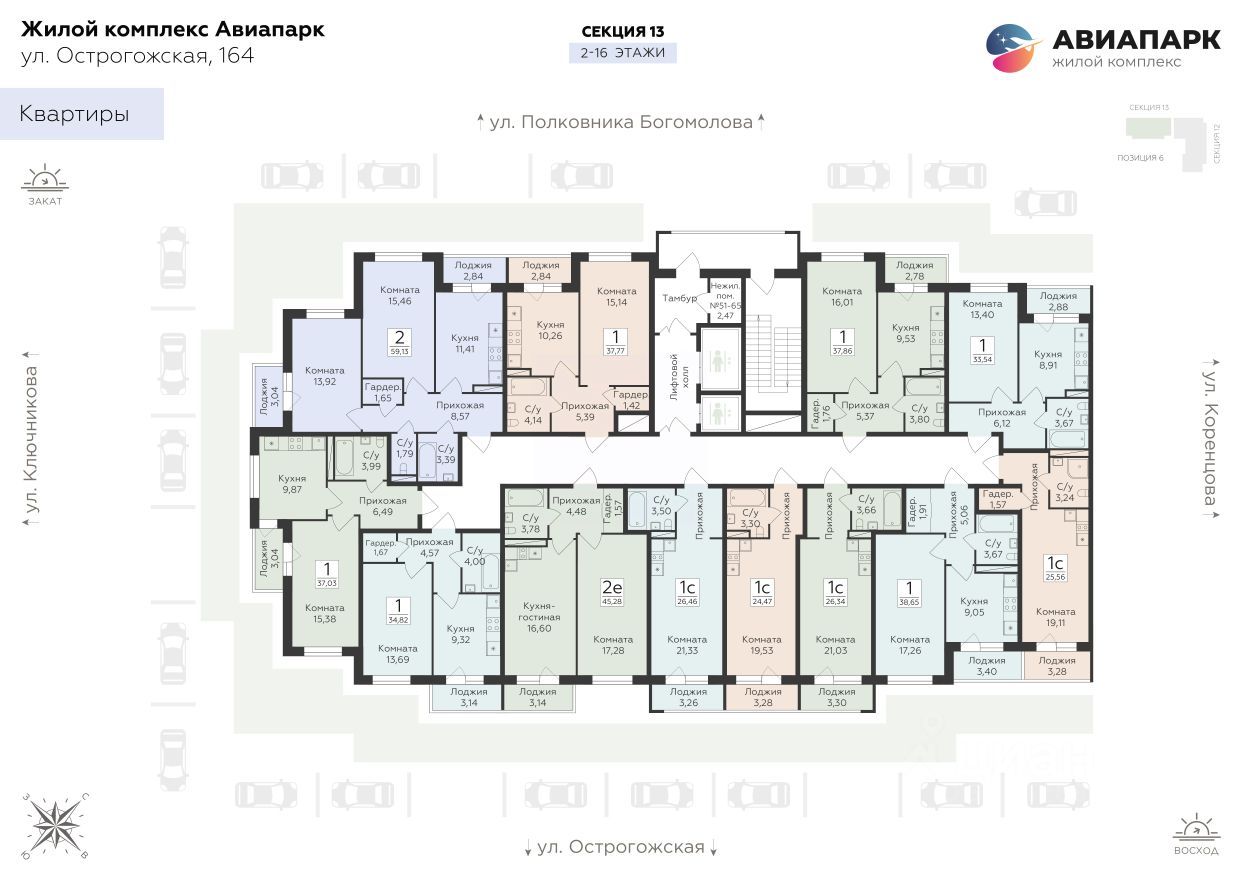 Жилой Комплекс ''АВИАПАРК'' расположен в микрорайоне Шилово города Воронежа, который является самой экологичной локацией города. ЖК строится по монолитно-кирпичной технологии. Места общего пользования, холлы и коридоры выполнены по дизайнерскому проекту. В квартирах выполняется качественная отделка, лучевая разводка системы отопления. Неоспоримое преимущество проекта — возможность приобрести и чистовую отделку. Первый этаж займет магазин Пятерочка. Благоустройство прилегающей территории включает в себя: организацию зон отдыха, детских игровых и спортивных площадок, просторный паркинг на территории ЖК, а также комплексное озеленение. В непосредственной близости расположены образовательные учреждение и магазины. Ввод в эксплуатацию запланирован на второе полугодие 2023 года. Все дома построены по передовым технологиям и обладают высоким рейтингом энергосбережения, что позволяет значительно снизить платежи по коммунальным услугам. Огромные парковые зоны где можно подышать свежим воздухом, самая длинная вело-дорожка протяженностью 7 км, а также к вашим услугам многочисленные спорткомплексы, включая крупнейший в Воронеже плавательный бассейн закрытого типа ''Посейдон''. Многочисленные торговые центры порадуют вас своим разнообразием и приемлемым уровнем цен. Для ваших детей: школы, детские сады и ясли. Квартиры с возможностью выбора отделки — стандарт и бизнес-класс. Покупая квартиру в ГК Развитие, вы получаете дополнительно БЕСПЛАТНО: - помощь в одобрении и получении ипотеки с минимальной процентной ставкой, - ПОЛНОЕ ЮРИДИЧЕСКОЕ СОПРОВОЖДЕНИЕ от сбора документов до регистрации права собственности, - Консультация и подбор удобного объекта в любое УДОБНОЕ ВРЕМЯ, - Гарантии надежности и качества.
