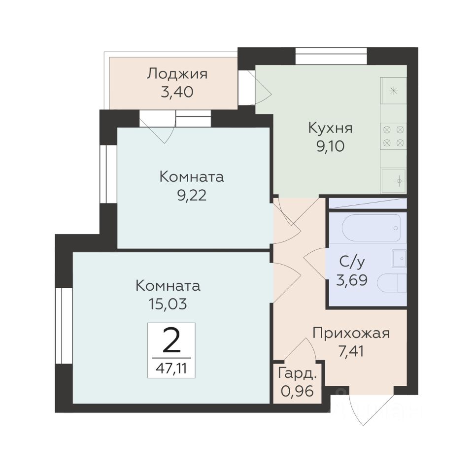 47 м² · Этаж 15 из 19