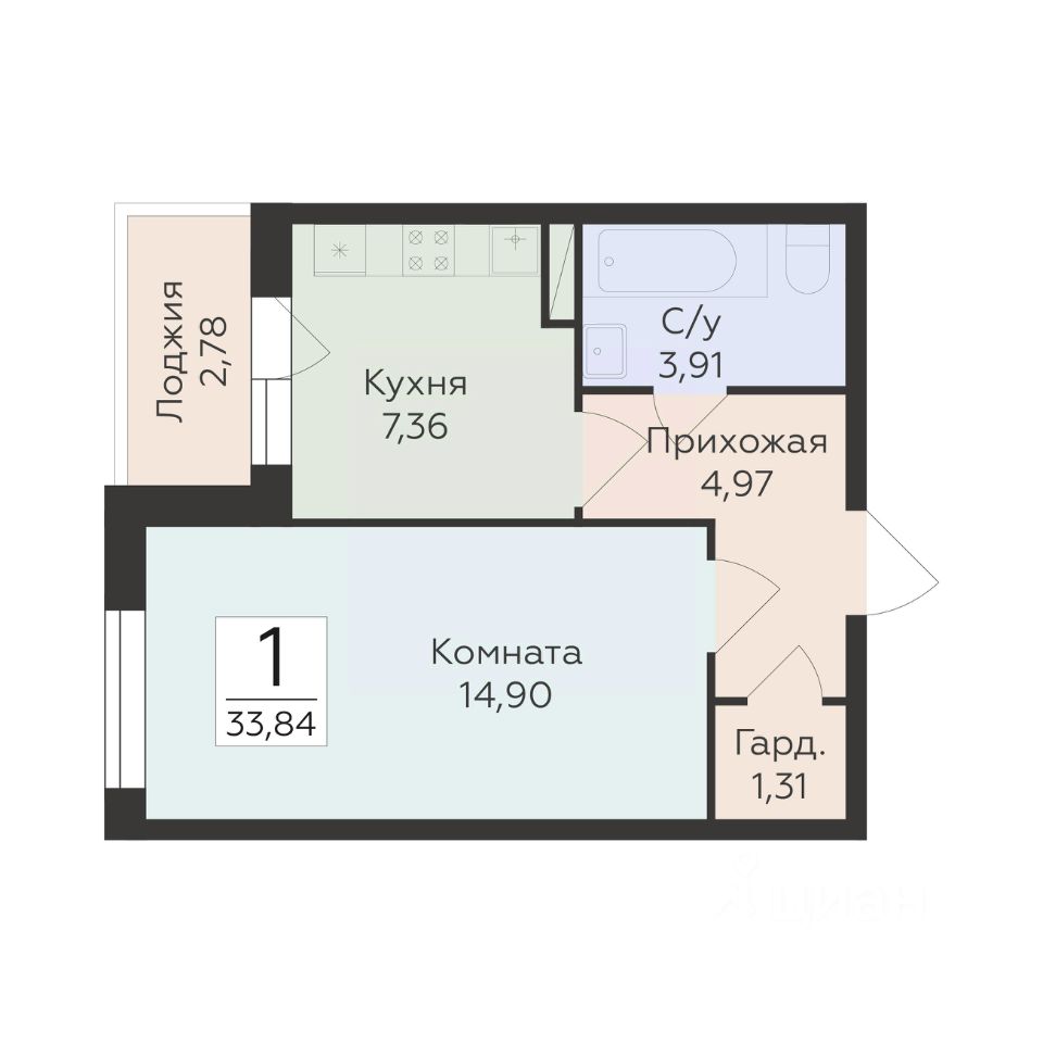 26 м² · Этаж 4 из 19