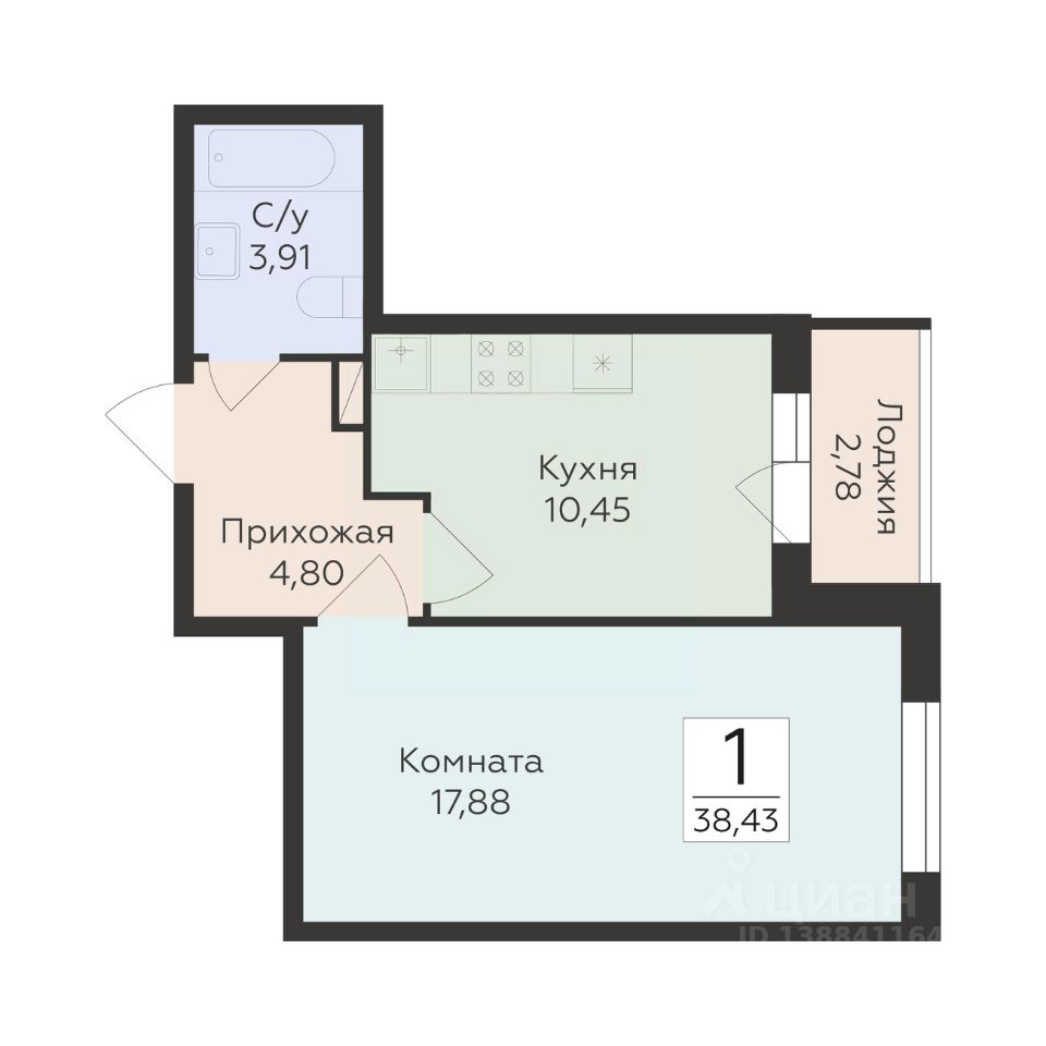 41 м² · Этаж 24 из 27
