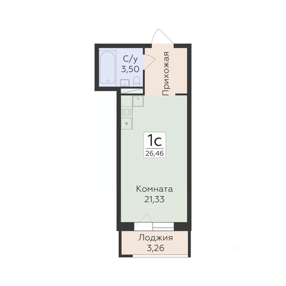 26 м² · Этаж 9 из 19