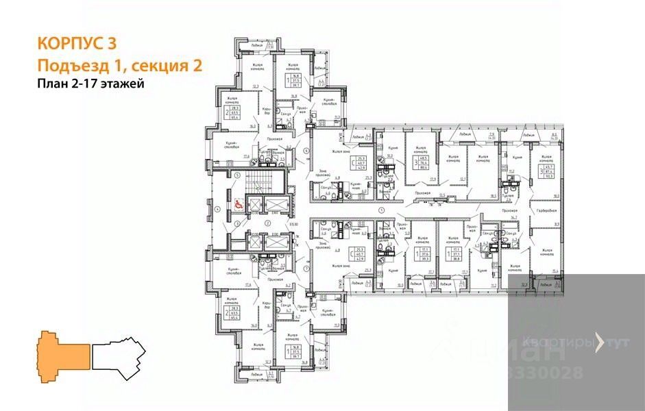 Квартира: 2 к 65,40 кв.м., 9 этаж в комплексе Европейский, 2 очередь, корп.3, сдача: 4кв. , этажей: 24, адрес Воронеж г., Красных партизан ул., д. 35, Застройщик: ДСК.
