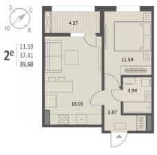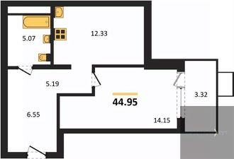 Квартира: 1 к 44,95 кв.м., 15 этаж в комплексе Z-town, 2 очередь, корп.2, сдача: 3кв. , этажей: 21, адрес Воронеж г., Чуева наб., д. 7, Застройщик: Новый код.