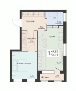 1-к квартира Показать на карте