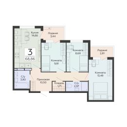 Продаётся 3-комнатная квартира в строящемся доме (1 этап), срок сдачи: IV-кв. 2029, общей площадью 68.86 кв.м., на 6 этаже. Новый жилой комплекс от группы компаний ''Развитие'' расположен по адресу: г. Воронеж, по ул. Туполева.