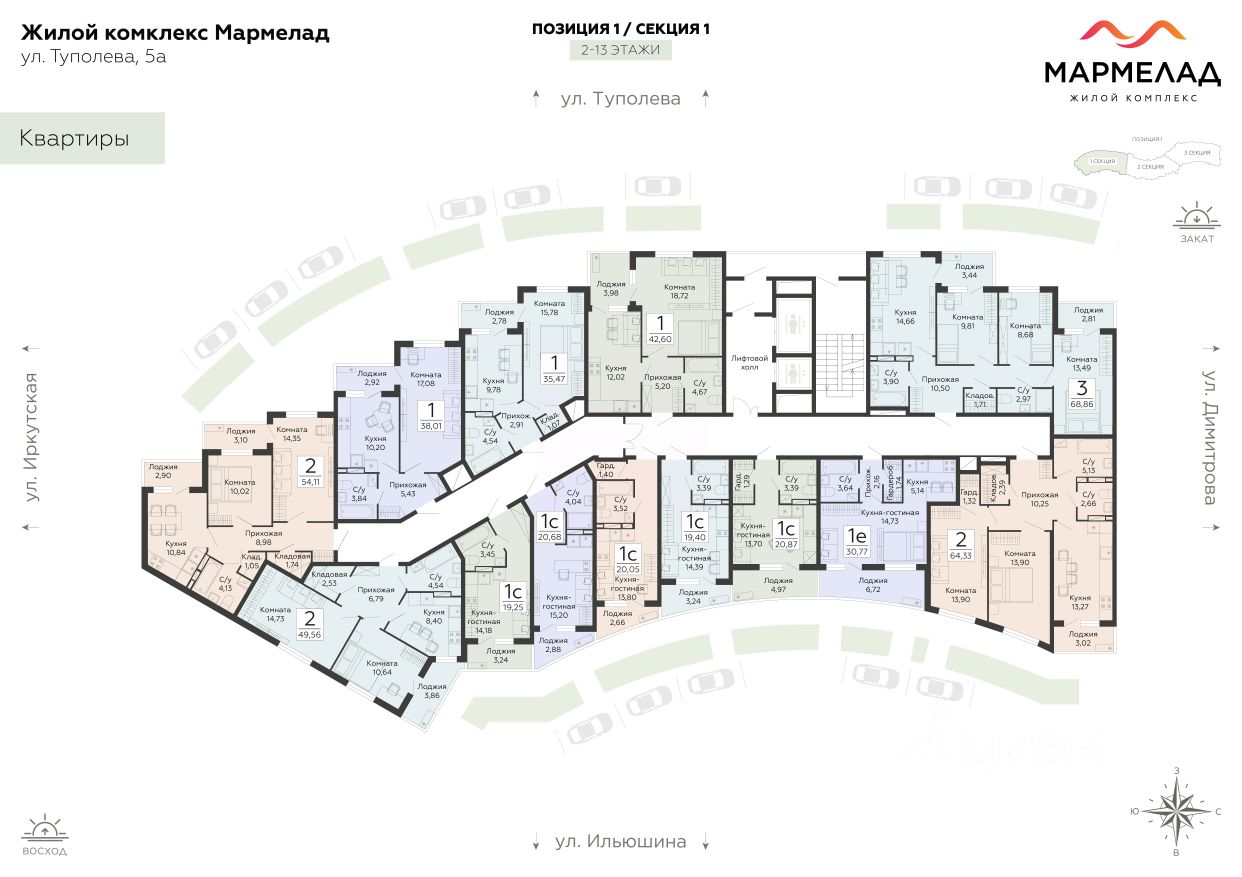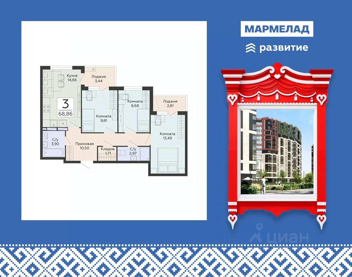 68 м² · Этаж 9 из 13