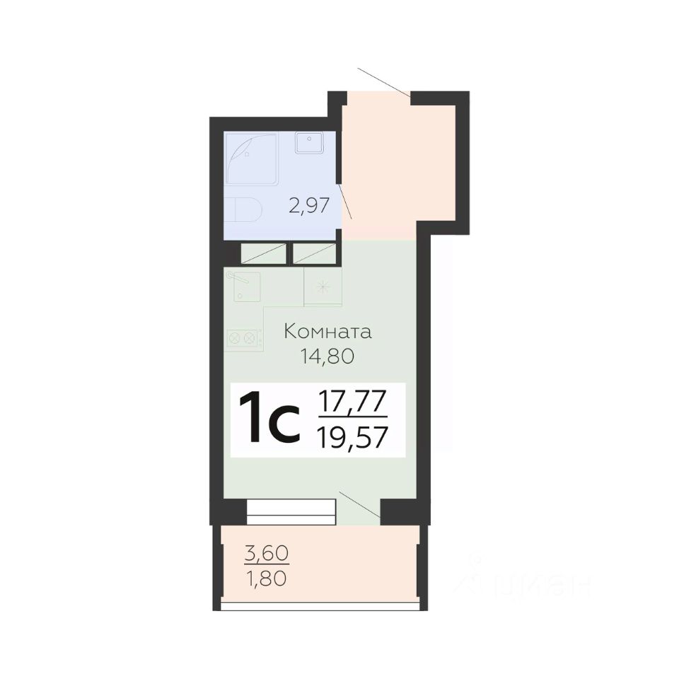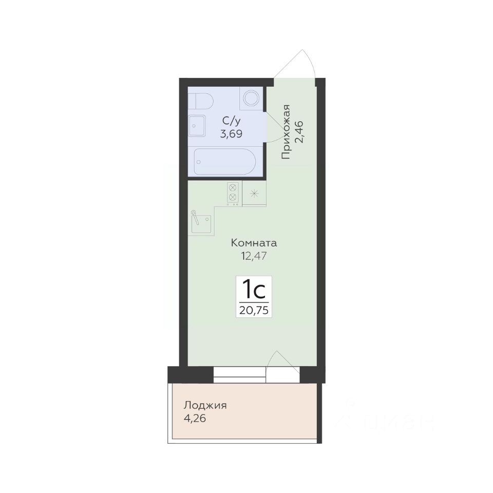 20 м² · Этаж 13 из 17
