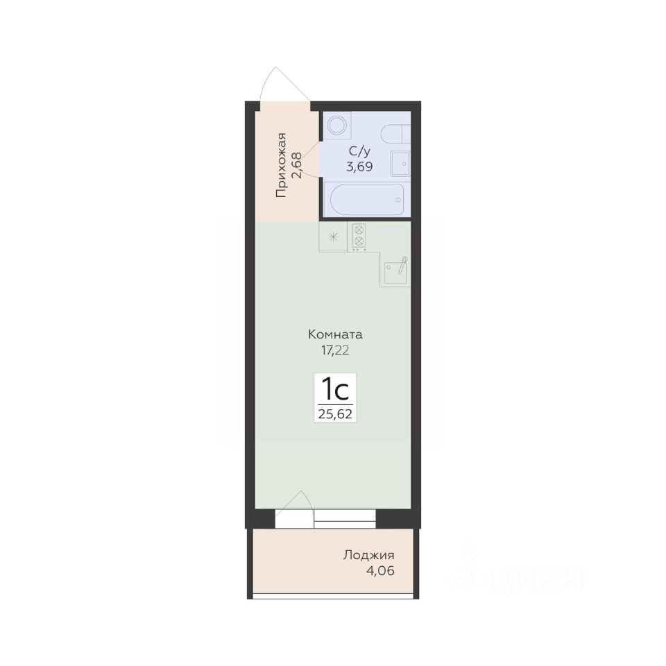 25 м² · Этаж 6 из 17