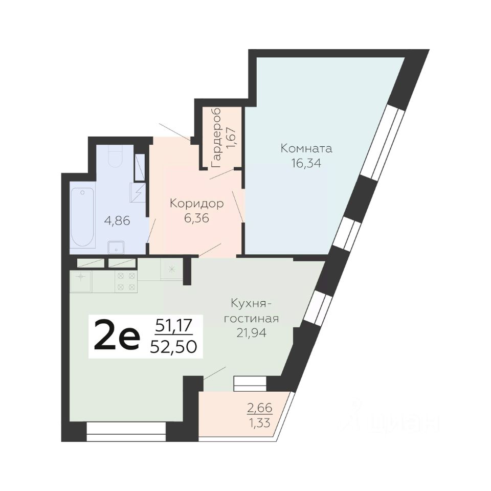 52 м² · Этаж 13 из 24