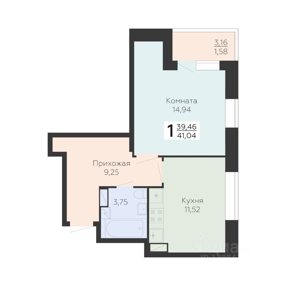 39 м² · Этаж 4 из 17