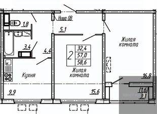 Квартира: 2 к 58,60 кв.м., 6 этаж в комплексе Яблоневые сады (ДСК), 1 очередь, корп.9, сдача: 4кв. , этажей: 19, адрес Воронеж г., Ломоносова ул., д. 129, Застройщик: ДСК.
