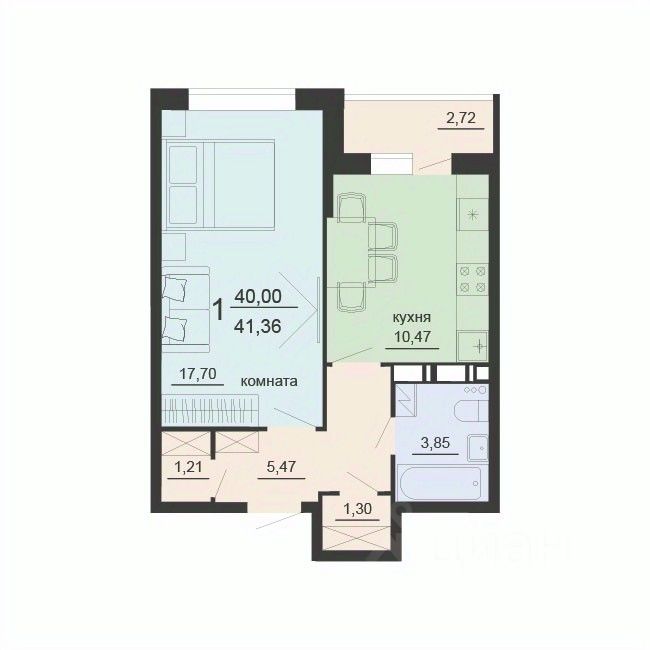 40 м² · Этаж 4 из 19